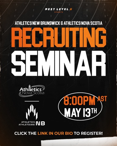In partnership with Athletics Nova Scotia and Athletics New Brunswick we are excited to announce the next session in our Seminar Series, focused on Recruiting Standards & Timelines for Track and Field. This recruiting seminar will be held on May 13th at 8:00 PM Atlantic Time via Zoom and is designed to help student-athletes understand the critical aspects of recruitment in Track and Field.
